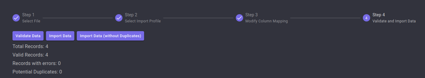 Following all steps in the wizard, click on Validate Data on the last screen and verify the output. If everything works well, you should see some figures like below. If you are happy, click on Import Data to finish the process.
